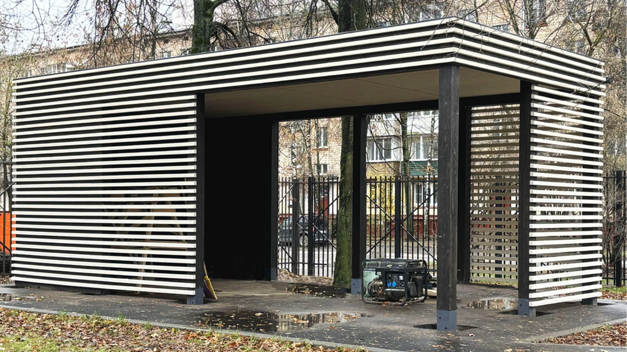 Готовый комплект беседки приезжает на участок в разобранном виде, аккуратно заносится и устанавливется монтажниками