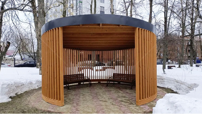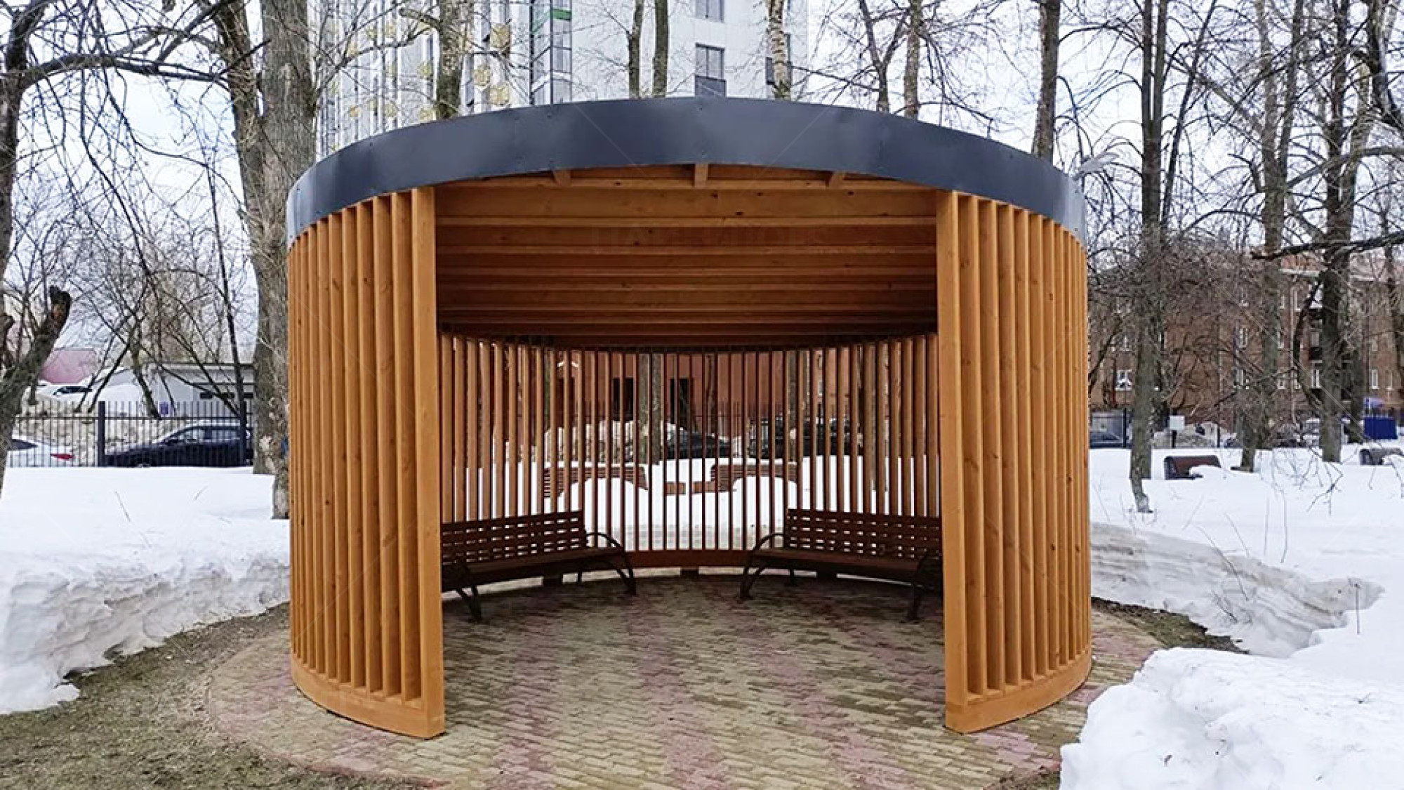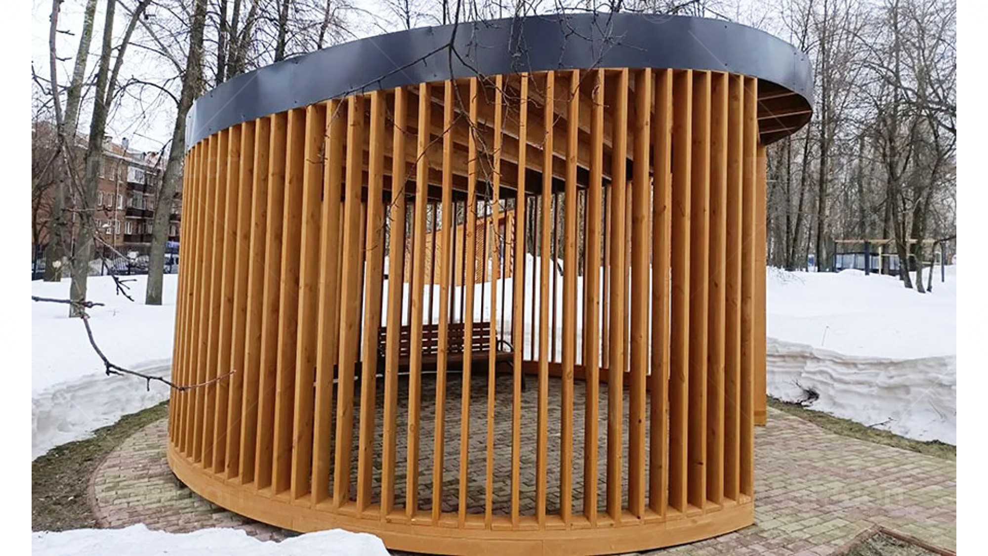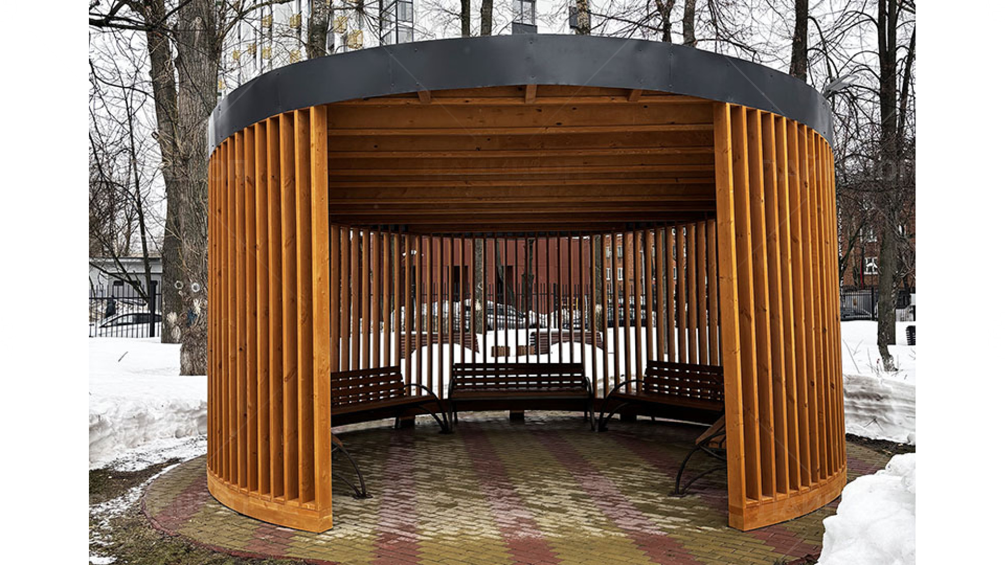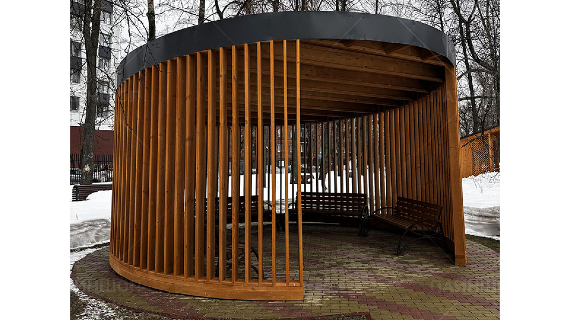 Внутри такой беседки можно разместить уличную мебель и освещение, обеспечивая комфорт и уют . Так же конструкцию можно использовать в качестве летней сцены для мероприятий, что будет выглядеть выгодно и эстетично.