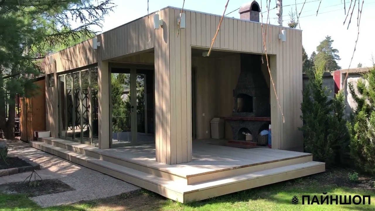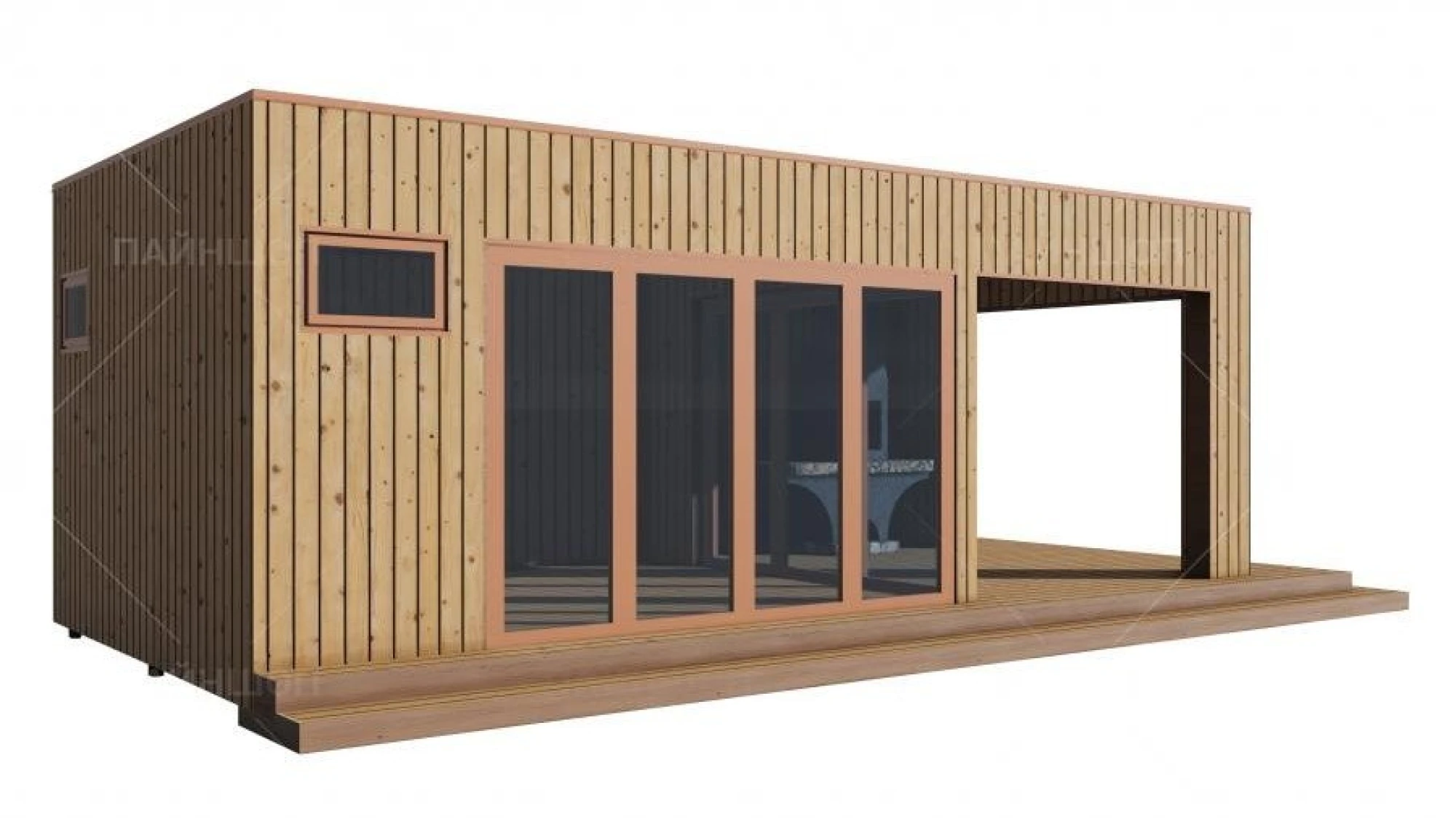 | Размер4 x 8 м (по крыше) | 4 х 5 м (закрытая часть) | 4,3 х 8,9 м (пол с террасой) |