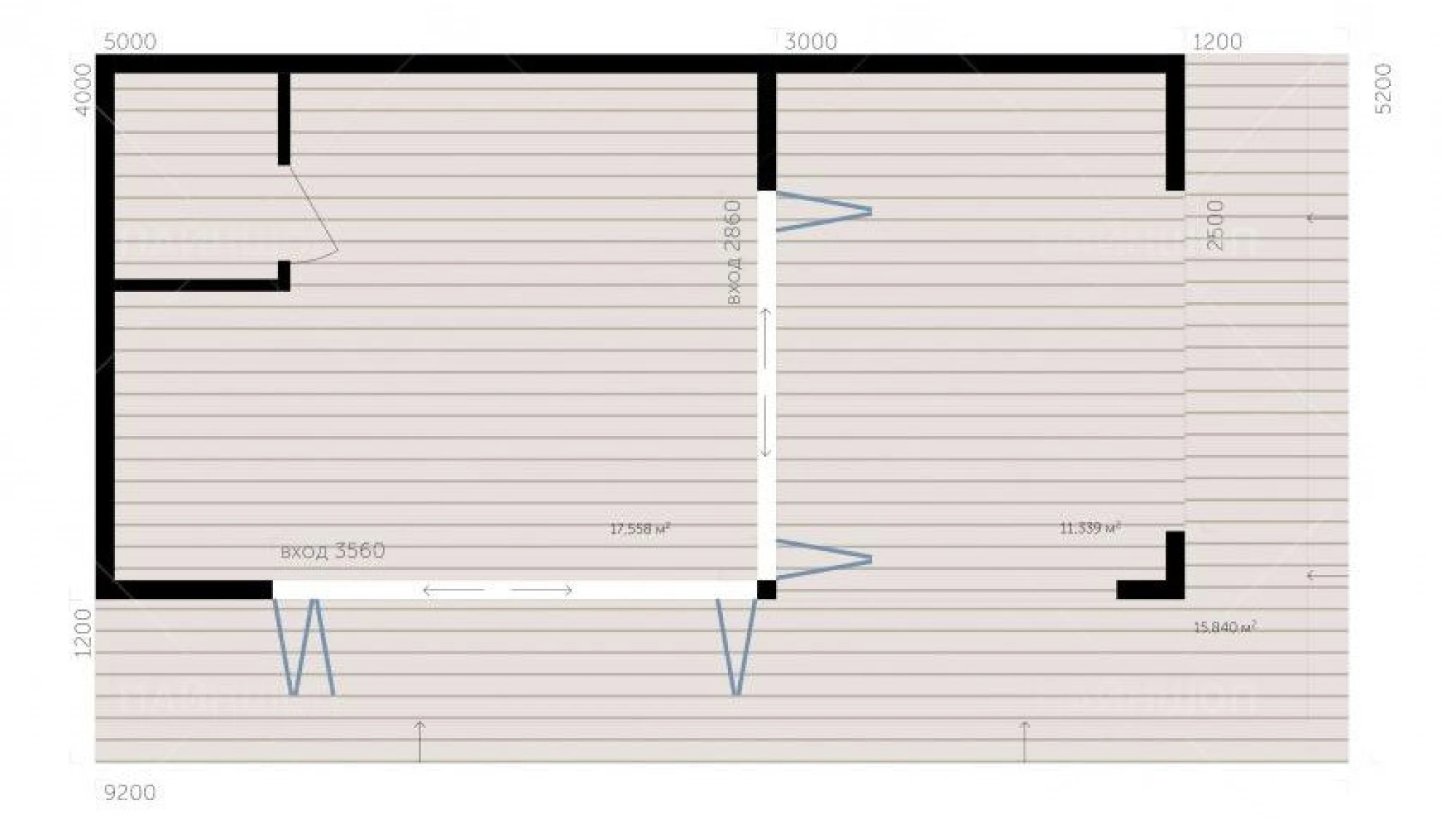 | Размер | 4 x 8 м (по крыше) | 4 х 5 м (закрытая часть) | 4,3 х 8,9 м (пол с террасой) |