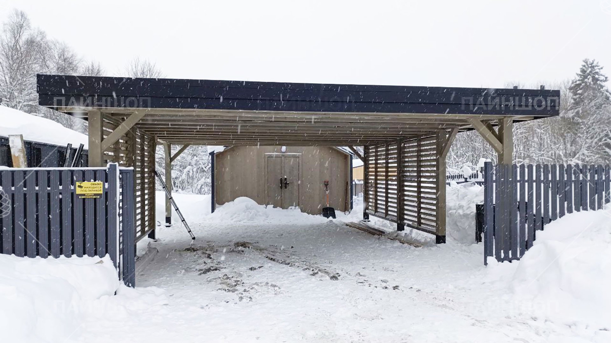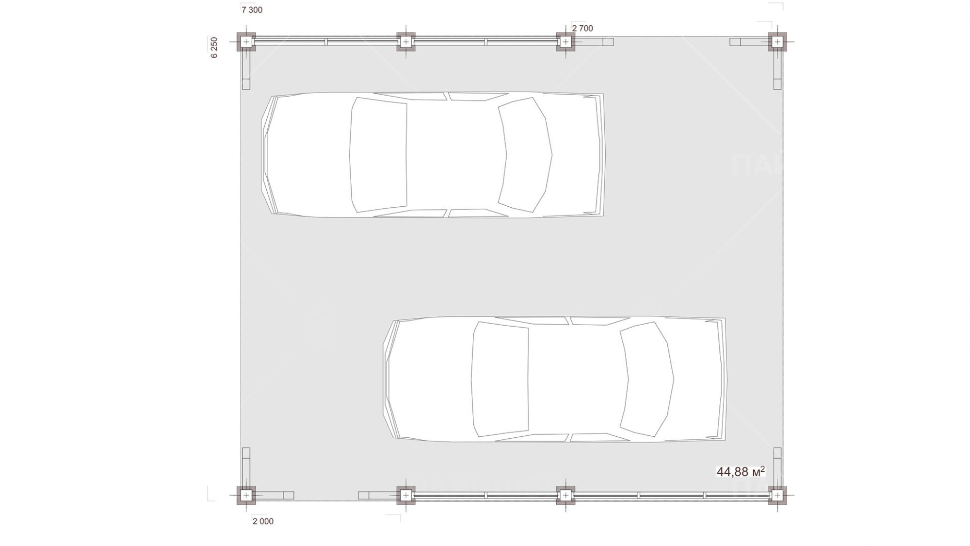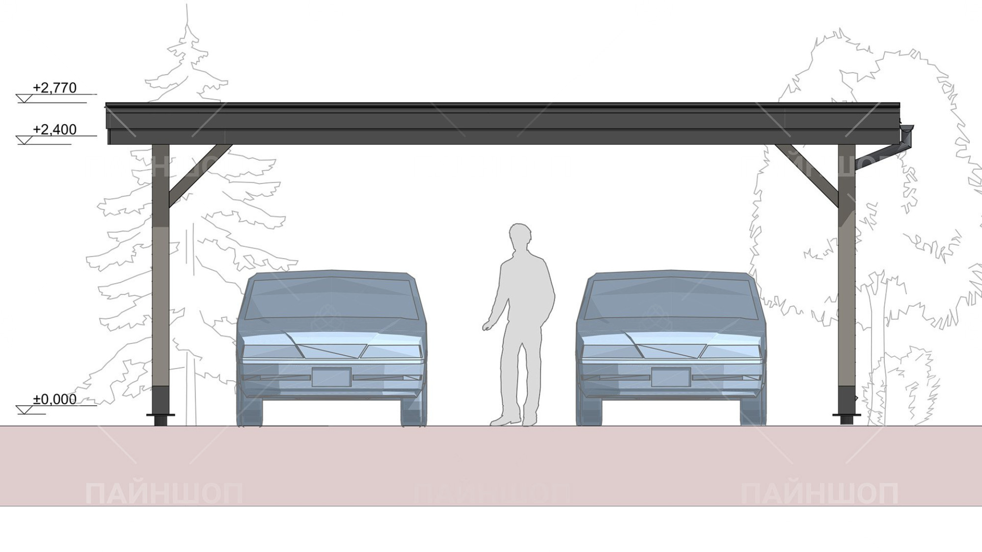 Проанализировав множество различных проектов навесов для авто, мы пришли к лаконичному и стильному решению, результатом которого стала серия автонавесов "Гамбург". Габариты навеса выбраны не случайно: часто наличие одного парковочного места бывает недостаточно для загородного участка, поэтому здесь есть место для двух машин. В то же время общий габарит навеса - 6,25х7,3 м делает навес просторным и позволяет разместить под ним не только авто. По двум сторонам имеется деревянное жалюзийное ограждение с ассиметрично расположенными проходами, что защитит от прямых лучей солнца и косого дождя, а так же создаст зонирование вашего участка. В данной модели отсутствует хозблок, что позволяет сэкономить на итоговой цене.